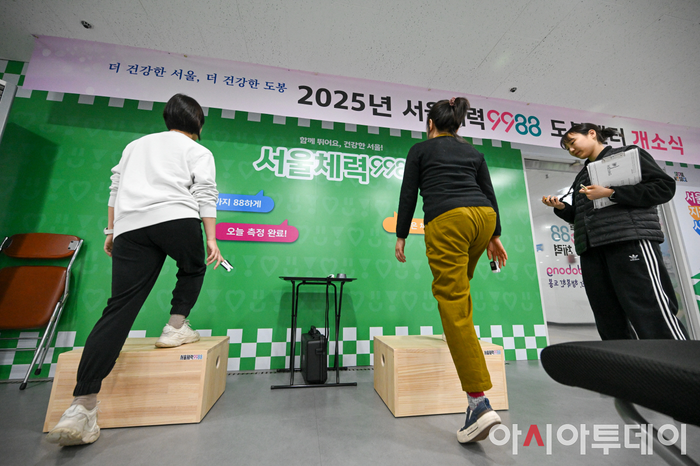 5일 서울 도봉구 도봉구보건소 지하 1층에 개소한 '서울체력9988 도봉센터'를 찾은 구민들이 심폐지구력 측정을 하고 있다. 도봉구는 4일 '서울체력9988 도봉센터' 개소하고 본격적인 지역 보건서비스의 새로운 시작을 알렸다. 도봉센터는 체력 측정과 운동 상담을 한 공간에서 제공하는 개인별 맞춤형 체력관리 시설로 체력측정구역, 운동처방구역 등으로 구성됐다. 손목닥터9988 앱을 통한 사전 예약제로 운영되며 측정 후에는 결과에 따라 ‘국민체력100 체력인증서’를 발급하고 이를 바탕으로 맞춤형 운동 처방이 제공된다. /정재훈 기자