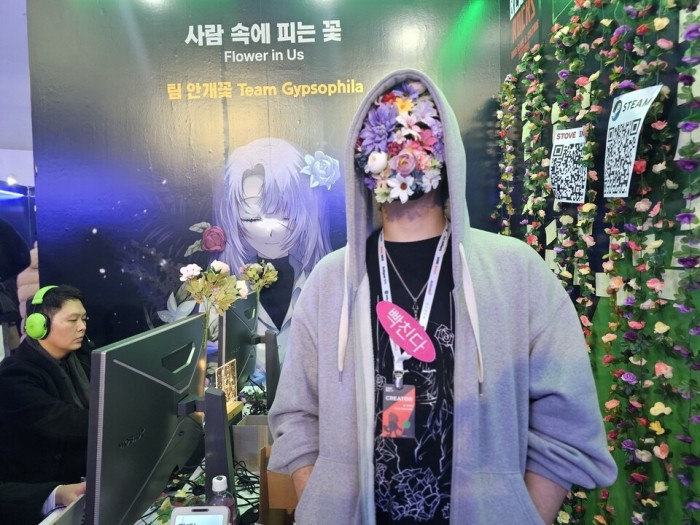 바로 팀 안개꽃 '사람 속에 피는 꽃'부스였다. 과연 이 독특한 타이틀은 어떤 게임일까. 사람 속에 피는 꽃을 개발한 팀 안개꽃의 팀장 '분필갈매기' 김선규 개발자를 만나 이야기를 들을 수 있었다.