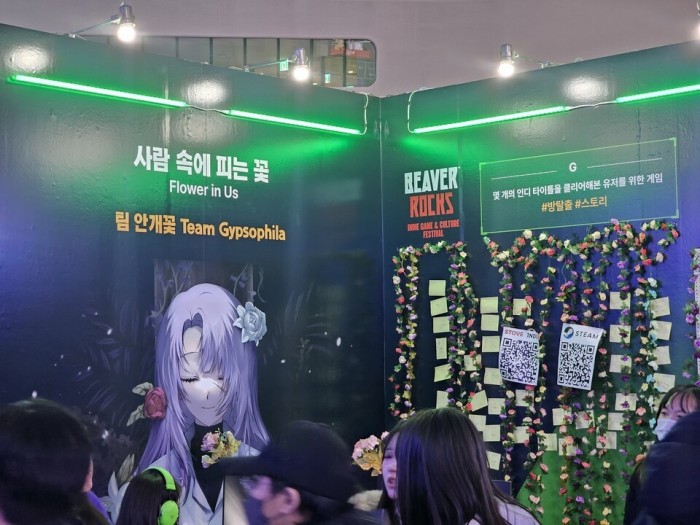 사람 속에 피는 꽃은 비버롹스에 3년 연속 참가하고 있다. 분필갈매기는 "매번 행사 퀄리티가 높아지고 사람도 계속 더 많아진다. 특히 인디 게임을 사랑하시는 분들이 엄청 많이 와주셔서 게임을 어필할 수 있고 소통하면서 게임에 대한 감상도 들을 수 있다는 게 너무나 좋은 기회"라고 전했다.