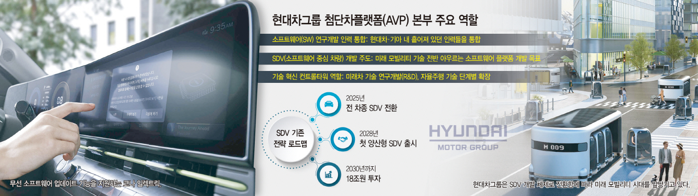 그간 AVP 본부를 통해 자율주행 기술 분야에 막대한 투자를 했으나 중국업체나 테슬라 등 글로벌 경쟁사들에 비해 기대한 성과에 미치지 못했다는 분석이다. 이에 따라 자율주행 로드맵과 SDV 전환 전략이 분기점에 들어섰다.