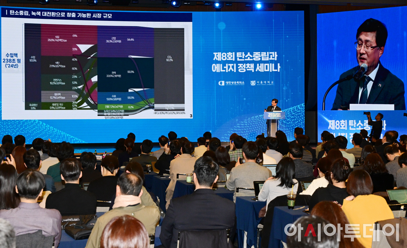 이날 세미나에는 최태원 대한상의 회장과 유홍림 서울대학교 총장을 비롯해 김성환 기후에너지환경부 장관, 위성곤 국회 기후위기특별위원회 위원장, 정부 관계자, 기업·학계·시민단체 인사 등 각계 주요 인사 400여 명이 참석했다.