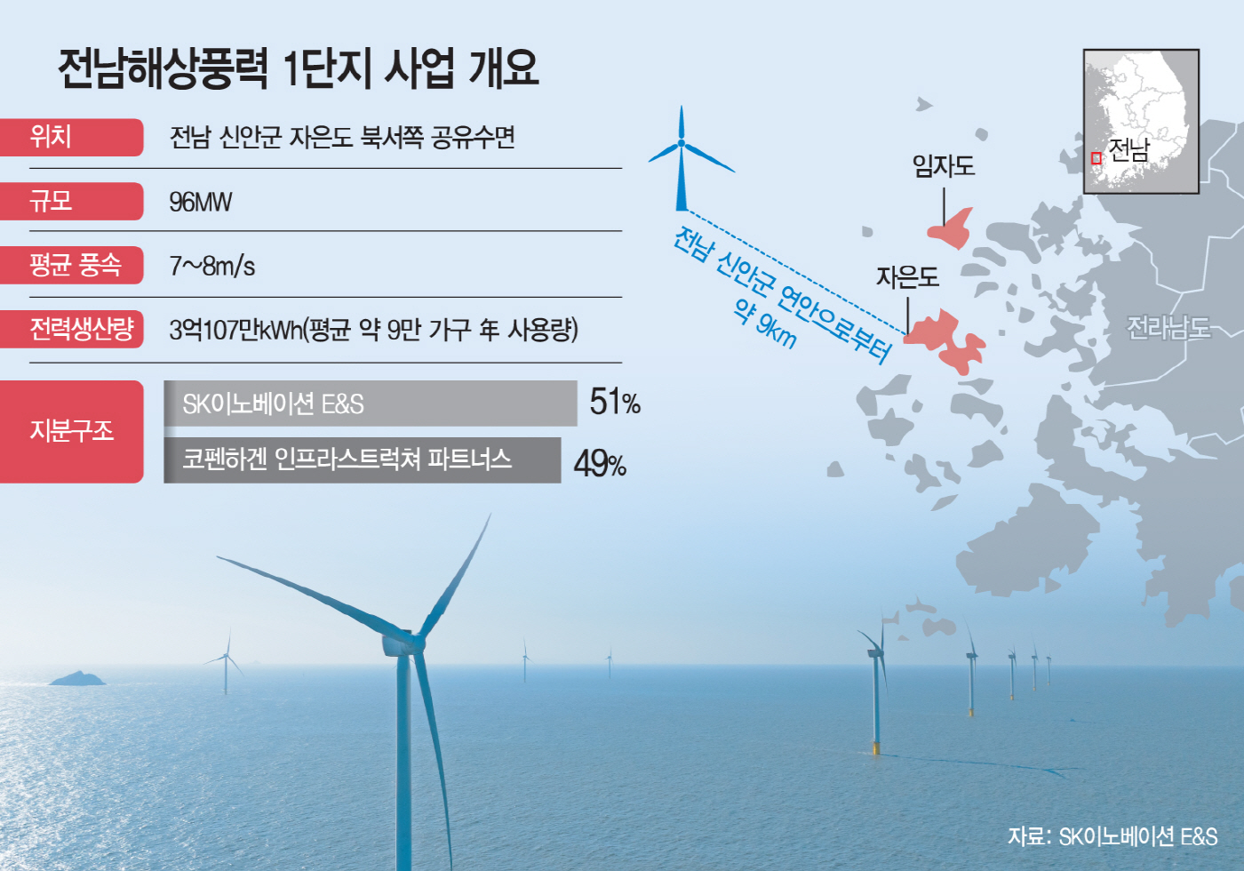 이번 사업은 SK이노베이션 E&S와 글로벌 에너지 투자회사인 CIP가 2020년 전남해상풍력㈜을 설립하고 공동으로 추진해왔다. 2023년 3월부터 육·해상 공사에 돌입해 지난해 12월 풍력발전기 10기 설치를 완료했으며, 올해 5월부터 상업운전을 개시했다.