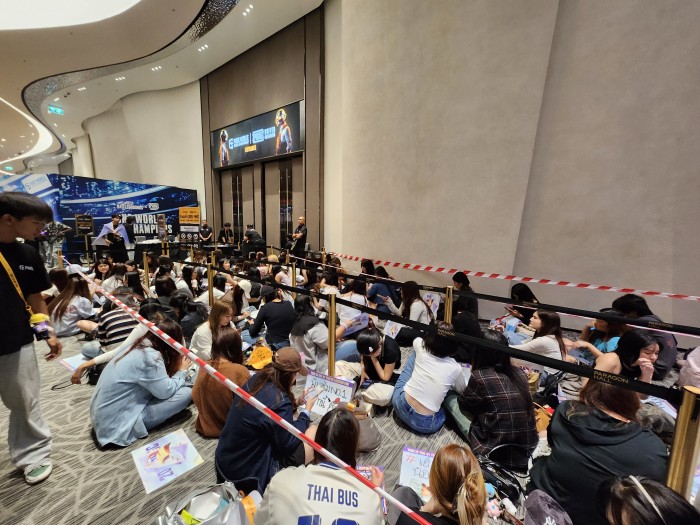 PGC 2025 그랜드 파이널 2일차를 맞은 방콕 시암 파라곤이 이른 시간부터 뜨겁게 달아올랐다. 13일 주말 효과가 더해지면서 현장은 1일차보다 훨씬 이른 시간부터 팬들로 가득 찼고 입장을 기다리며 복도에 빽빽하게 자리 잡은 관람객들의 행렬이 끝도 없이 이어졌다.