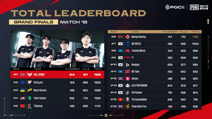 배고파는 13매치와 15매치에서 TOP 4에 들며 포인트를 쌓았으나, DN 프릭스나 아즈라 펜타그램과 충돌하며 전력을 소모했다. 아즈라 펜타그램 역시 16매치에서 1위 FS를 잡아내는 저력을 과시했음에도 불구하고, 다른 한국 팀과의 교전이나 후반부 운영 미숙으로 인해 87점, 13위에 머물렀다.