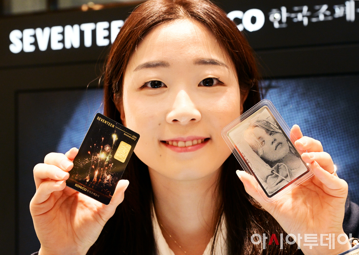 사는 15일 성남시 현대백화점 판교점에서 케이팝 그룹 세븐틴(SEVENTEEN) 데뷔 10주년을 기념한 두 번째 카드형 골드·실버를 공개했다.