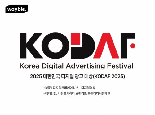 종합광고대행사 웨이블(wayble)이 ‘2025 대한민국 디지털광고대상’에서 디지털 크리에이티브–디지털영상(단편) 부문 우수상을 받았다고 16일 밝혔다.