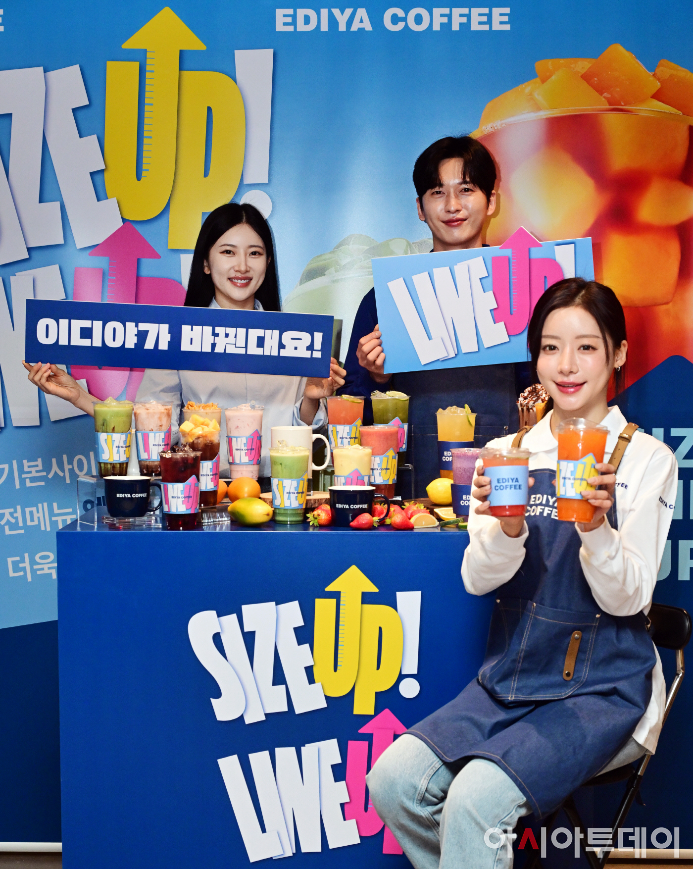 이디야커피는 16일 서울 중구 IBK본점 지하 1층 매장에서 음료 기본 용량 확대와 메뉴 라인업 개편을 알리는 ‘SIZE UP & LINE UP’ 적용 행사를 개최했다.