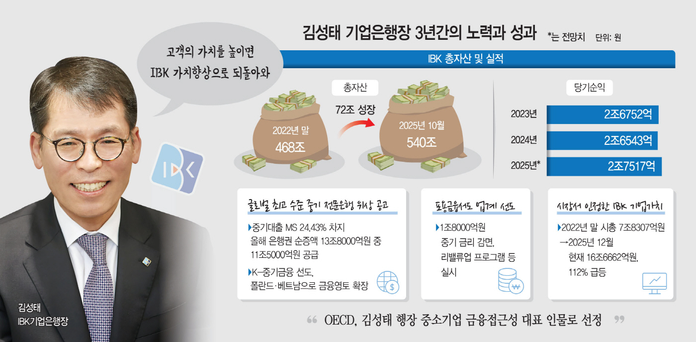 김성태 3년 ‘가치금융’ 성과… IBK, 글로벌 중기 전문은행 도약