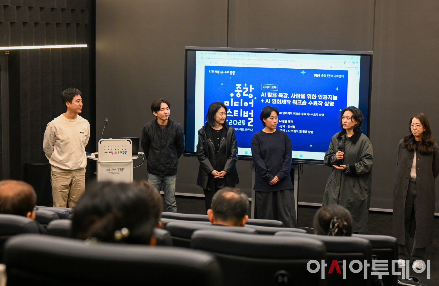 18일 서울 중랑구 중랑양원미디어센터에서 열린 '2025 중랑미디어페스티벌'에서 AI 영화제작 위크숍 수료작 상영 후 작가와의 만남이 진행되고 있다. 이번 축제는 중랑구 면목·양원미디어센터 누적 이용자 12만 명을 돌파하며 지역 내 다양한 미디어 창작 활동 인구의 성과를 공유하기 위해 마련됐다. AI의 개념과 활용법을 다루는 특강과 국내외 영화제 출품·수상작품, 청소년 영화캠프 2025 수료작 등 다양한 작품 상영과 체험 프로그램이 오는 20일까지 진행된다. /정재훈