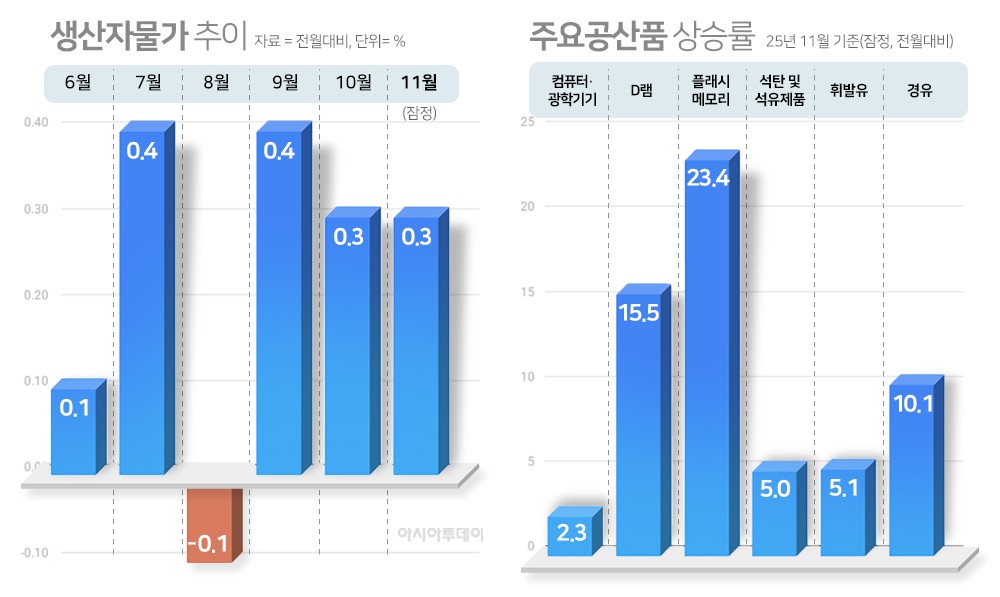 11월 생산자 물가 0.3% ↑…환율·반도체 가격 상승에 석달 연속 올라