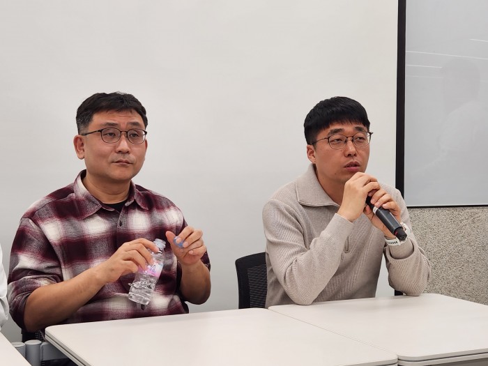 | (좌측부터) 미어캣게임즈 최연규 내러티브 디렉터, 남기룡 대표 /사진=김동욱 기자 |