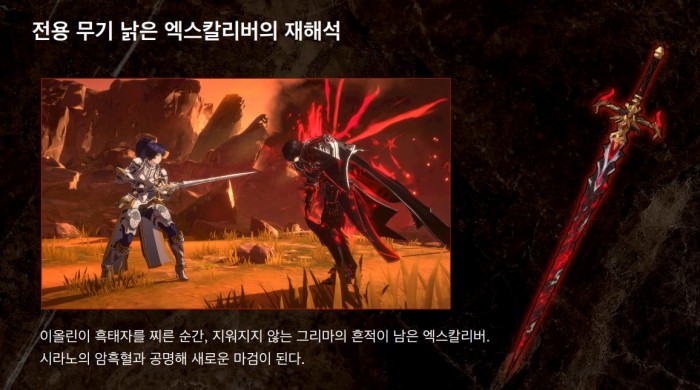 개발진은 원작 설정에 충실하게 몸속의 암흑혈이 일반 검을 감싸며 마검 아수라의 형태로 실체화되는 연출을 게임 내에 완벽히 구현했다. 시라노의 전용 무기인 '낡은 엑스칼리버' 역시 시라노의 암흑혈과 공명하며 새로운 마검으로 탄생하는 서사가 보강되었다.