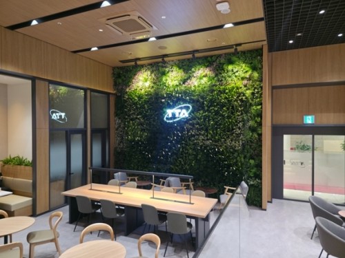 특히 대형 그린월 공간에는 화이트 컬러의 TTA 로고를 정확한 위치에 배치해, 기술 기관의 이미지를 유지하면서도 부드럽고 세련된 인상을 더했다. 해당 공간은 현재 라운지의 대표적인 포인트로 활용되고 있다.