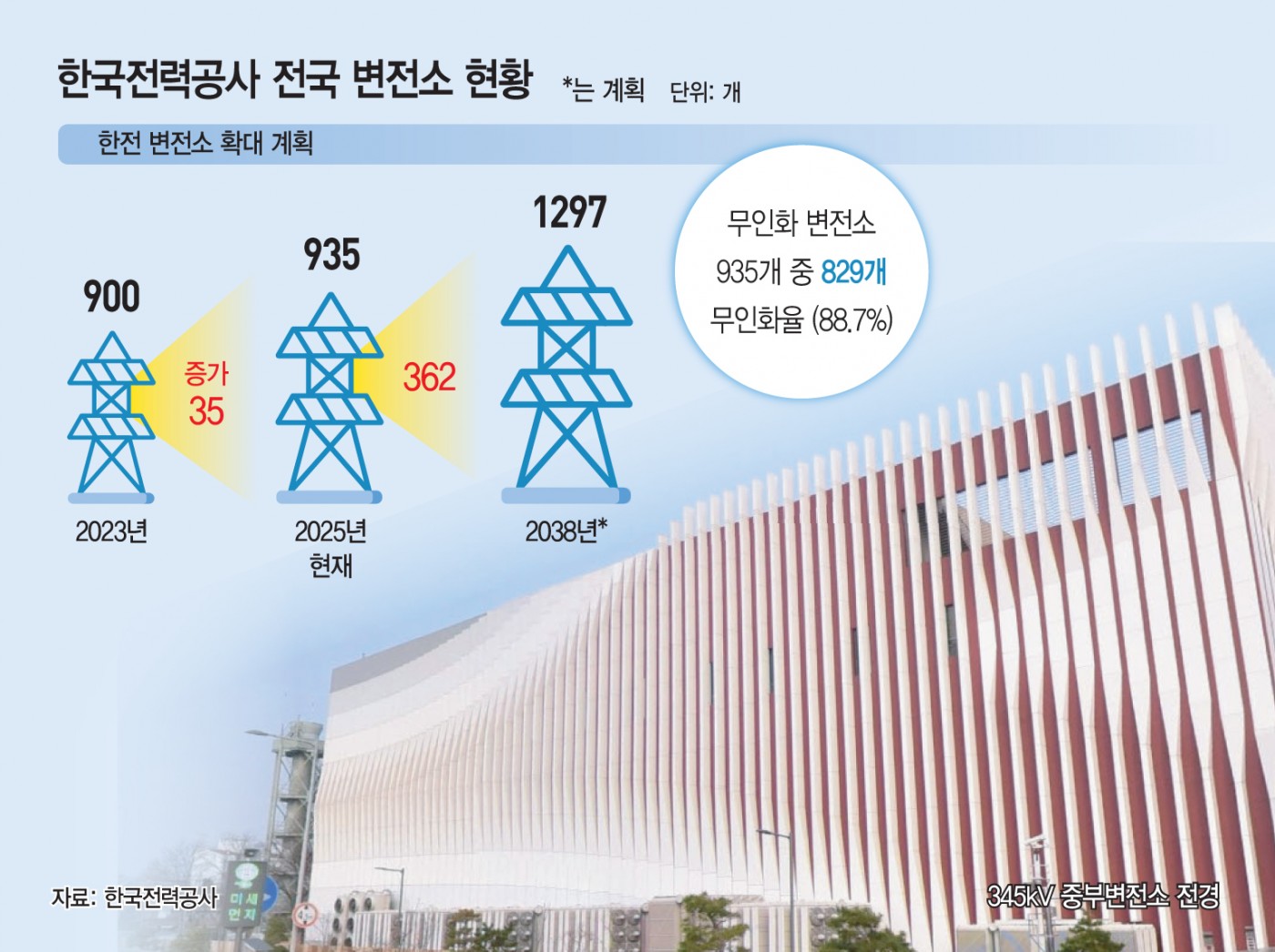 무인 변전소 수는 2023년 793곳에서 올해 829곳으로 36곳 증가했다. 이에 따라 한전 변전소 무인화 비율은 88.7%다.
