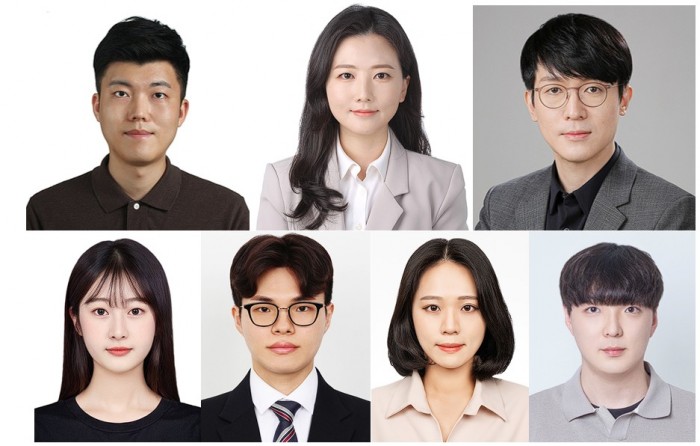 (왼쪽 위부터) 중앙대 김수환 교수, 연세대 진윤희 교수, 연세대 조승우 교수,(왼쪽 아래) 중앙대 최수미 석박사통합과정생, 연세대 허정현 연구원, 연세대 김예슬 박사과정, 홍진우 프레스티지바이오파마IDC 연구원.