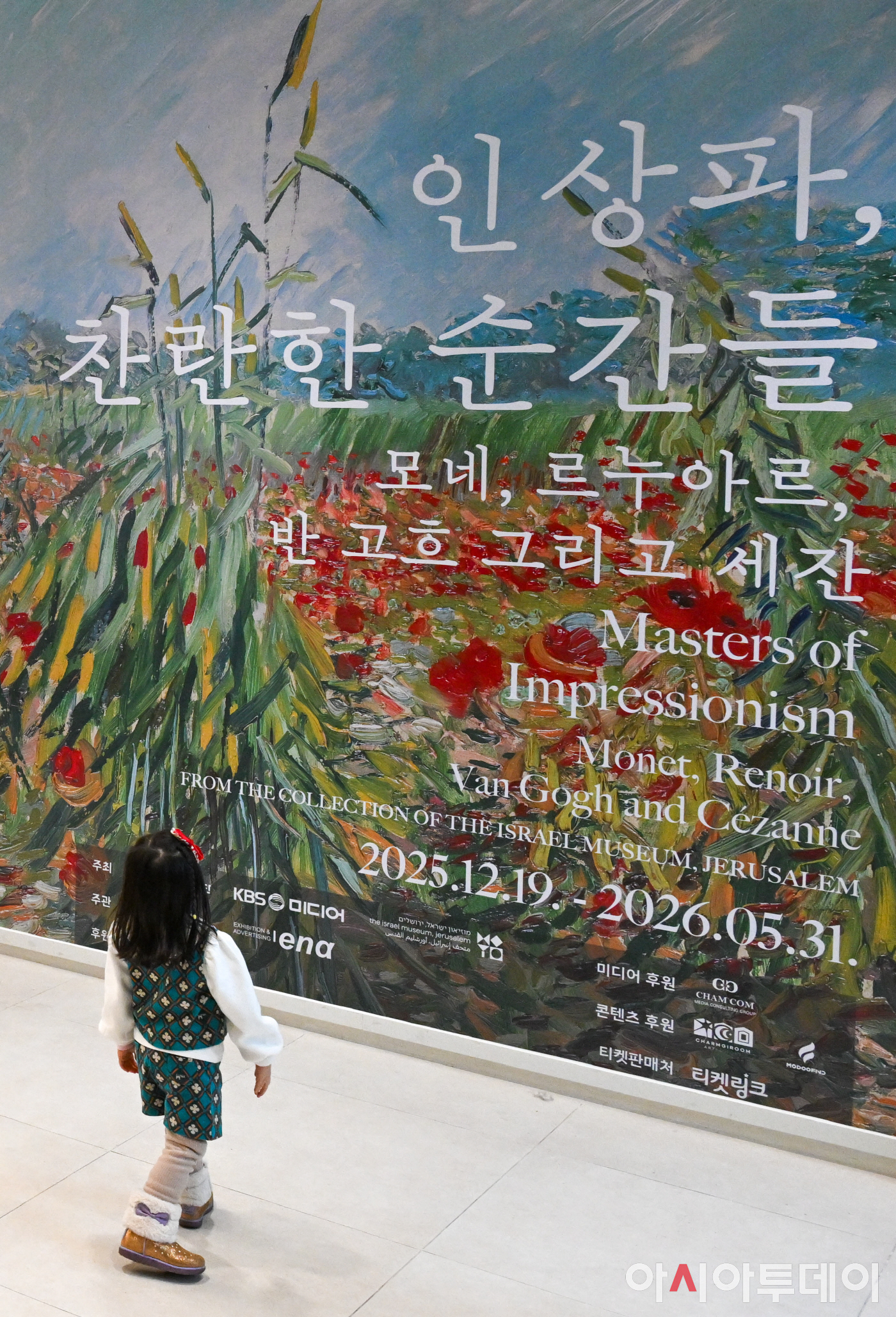 28일 서울 노원구 노원문화예술회관 노원아트뮤지엄에서 열린 ‘인상파, 찬란한 순간들: 모네, 르누아르, 반 고흐 그리고 세잔’ 전시를 찾은 아이가 관람을 기다리고 있다. 이번 전시는 19세기 후반부터 20세기 초반 서양 근대미술의 흐름을 이끈 인상주의 거장 11인의 대표작 원화 21점을 선보이는 대형 전시로 사전예매 단계부터 높은 관심이 이어지며 얼리버드 티켓 예매 건수가 4만 3천여 매에 달해, 지역 전시로는 이례적인 성과를 기록하며 관람객들의 발길이 이어지고 있다. 전시는 내년 5월 31일까지 운영된다. /정재훈 기자