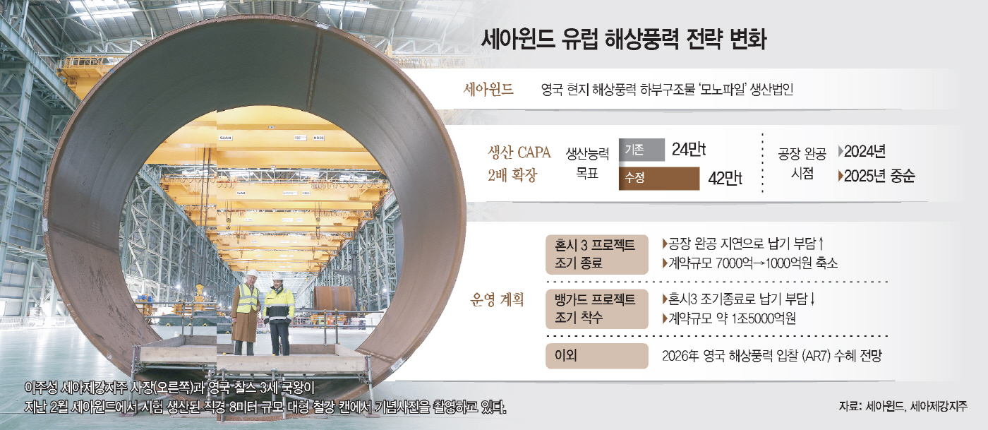 세아제강지주의 영국 법인 세아윈드가 7000억원 규모 혼시3 프로젝트 계약을 조기 종료하고 1조5000억원 규모 뱅가드 프로젝트에 화력을 집중한다.