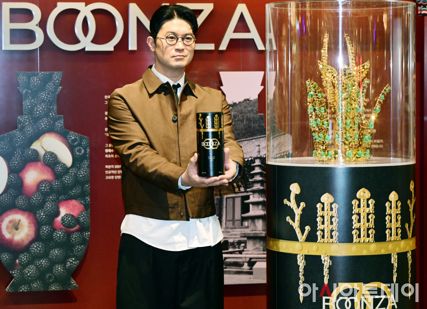 복분자주 브랜드 ‘분자’는 2일 서울 여의도 더현대에서 다이나믹 듀오 멤버 최자가 참석한 가운데 팝업스토어를 열고 한정판 제품 ‘신라 금관 에디션’을 선보였다.