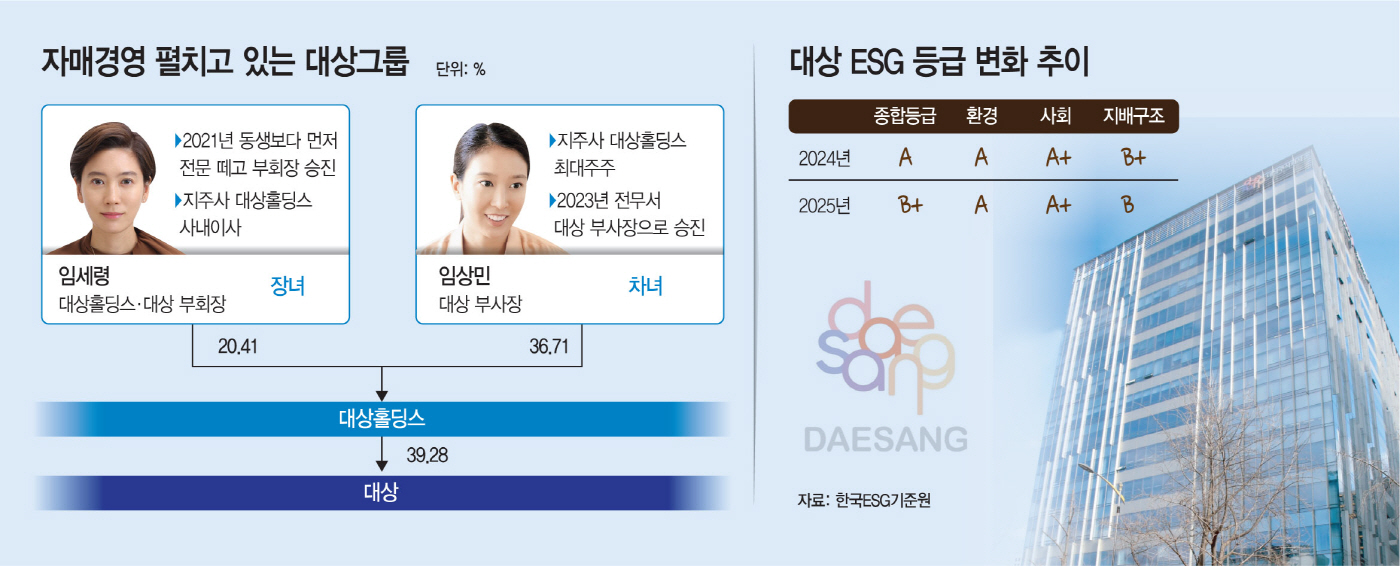다만 시장이 주목한 리스크는 시스템이 아닌 '사람'과 '구조'에 있었다. 대상그룹의 지배구조는 대상홀딩스→대상㈜→계열사로 이어지는 수직 계열화 형태다. 그룹 지배력의 정점인 대상홀딩스 지분구조만 보면 '차기 총수'는 차녀 임상민 부사장이 유력하다. 임 부사장의 대상홀딩스 지분율은 36.71%로, 언니인 임세령 부회장(20.41%)을 크게 앞선다.