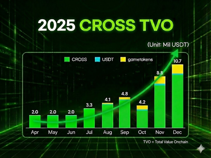 온체인 게임 플랫폼 크로쓰(CROSS)가 게임체인 성장의 핵심 지표로 TVO(Total Value Onchain)를 내세우며 예치 중심이 아닌 실사용 기반 온체인 경제의 확장을 수치로 보여주고 있다.