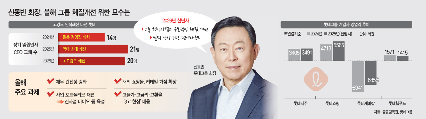 관전 포인트는 사업 포트폴리오 재조정과 책임경영 강화다. 롯데는 그룹 전략과 연관성이 낮은 비핵심 사업을 정리하고, 이를 통해 확보한 재원을 본원적 경쟁력 강화와 미래 성장 분야에 재투자하는 방식으로 사업 포트폴리오를 재편하고 있다. 지난해 3월에는 사모펀드 어피니티에쿼티파트너스와 롯데렌탈 지분 56.2%를 약 1조6000억원에 매각하는 계약을 체결했다. 이에 앞서 코리아세븐 ATM 사업부와 가동을 중단했던 롯데웰푸드 증평공장 매각 계약을 잇달아 맺으며 재무 건전성 제고에 속도를 내고 있다.