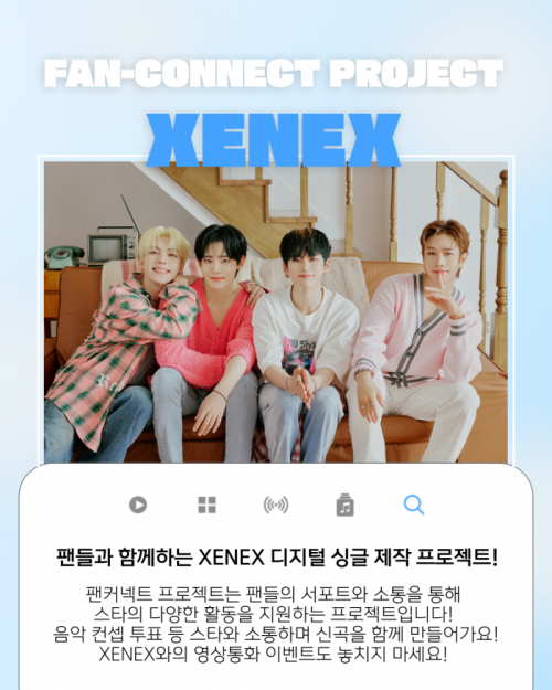 XENEX는 태하, 희석, 인곤, 민종으로 구성된 4인조 보이그룹이다. 현재 일본 현지를 중심으로 공연과 활동을 이어가며 안정적인 팬층을 확보해왔다. 이번 팬커넥트 프로젝트를 통해 XENEX는 팬들과 함께 신곡 제작 전반을 공유하며, 음악적 방향성과 콘셉트를 함께 완성해 나갈 예정이다.