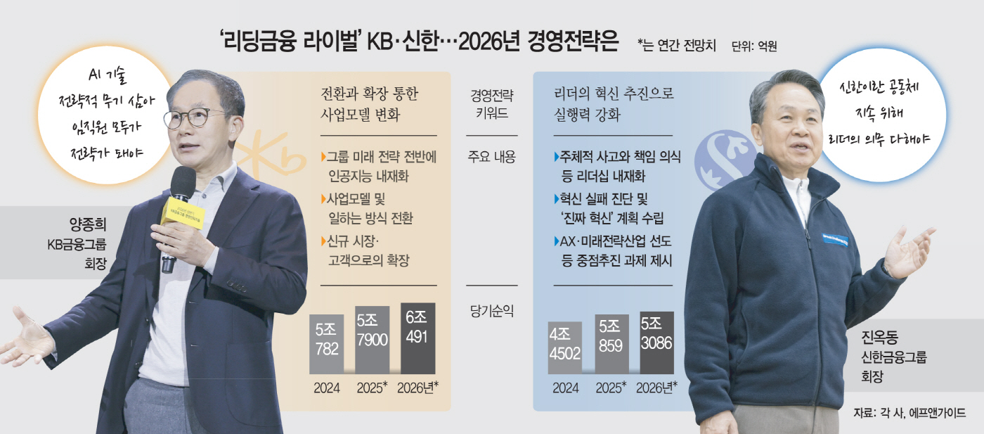 올해는 변화보다는 안정에 방점을 찍은 만큼, 실적 호조세를 이어가면서도 신사업과 AI 전환 등 새로운 도전 역시 병행하겠다는 것이 양 회장의 구상이다. 특히 연임이 걸린 임기 3년 차에 접어든 상황에서 수익성과 안정성을 동시에 확보해 리딩금융 수성에 더욱 힘을 싣겠다는 전략으로 풀이된다.
