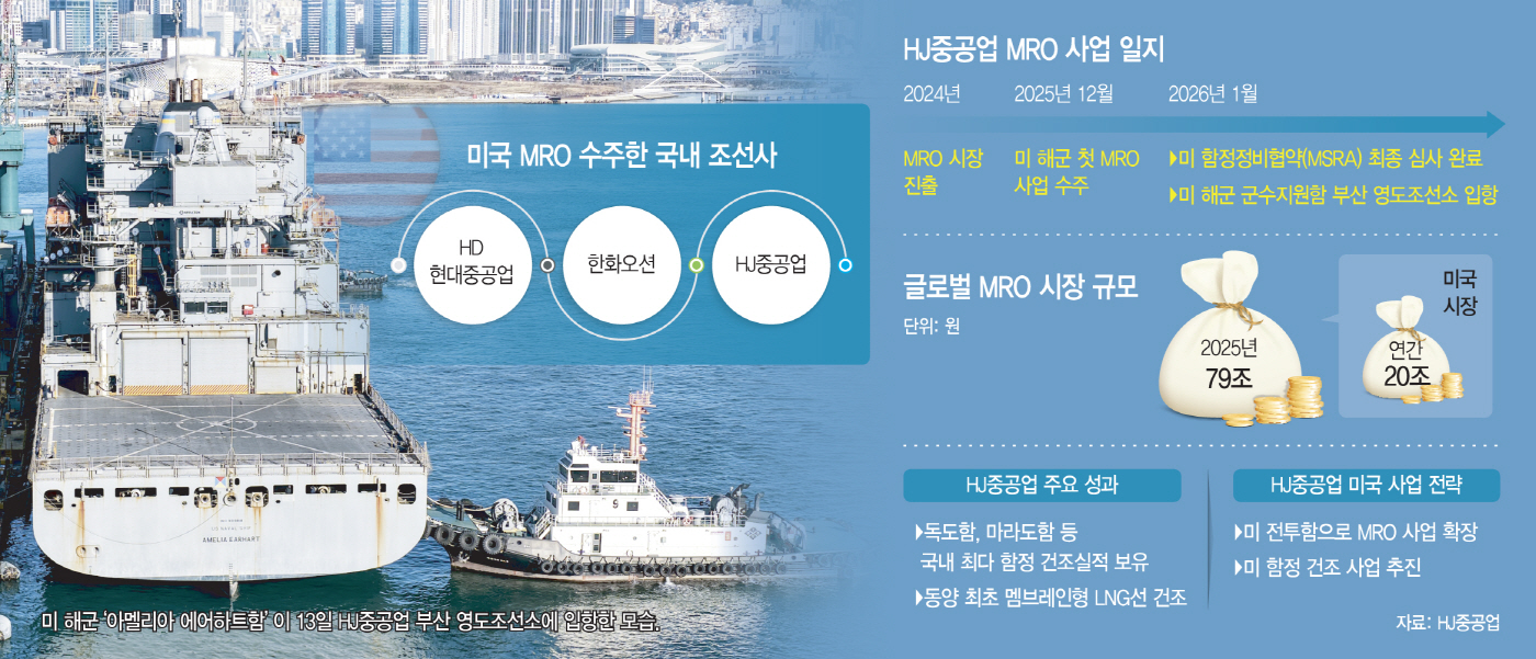 HJ중공업은 2024년부터 미 해군 MRO 시장 진출을 준비해 왔다. 지난해 12월 첫 사업을 수주한 데 이어 이달 중으로 미 해군 전투함의 MRO 사업 입찰 참여가 가능한 함정정비협약(MSRA) 체결이 예정돼 있다. 단발성 수주가 아닌, 실질적인 사업 확대에 진입했다는 평가다.