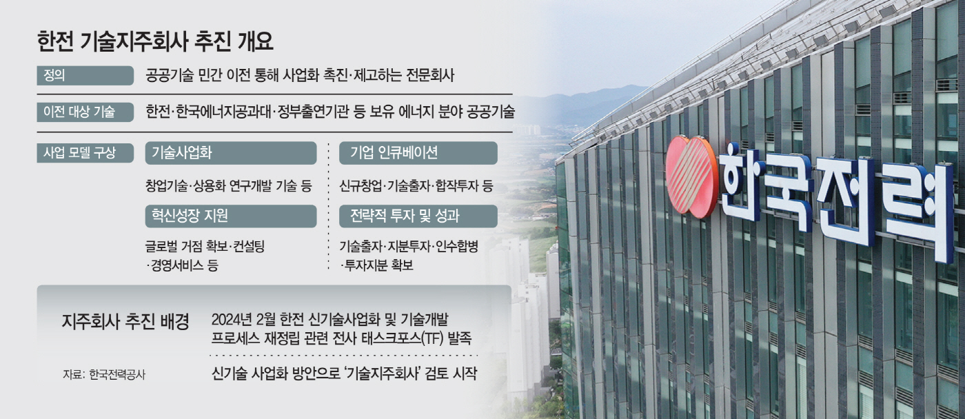 한전은 기술지주회사를 만들어 한전은 물론 한국에너지공과대학, 정부 출연기관 등이 보유한 에너지 분야 공공기술을 민간으로 이전해 사업화하는 것을 목적으로 추진 중이다. 특허도 기술 이전 대상이다. 현재까지 대상 특허만 9016건에 달한다. 한전도 매년 4000억원 규모의 연구개발(R&D)을 진행 중이고 관련 성과도 나오고 있는 만큼 이를 활용해 기업에 기술을 이전·사업화하는 방안을 계획 중이다.