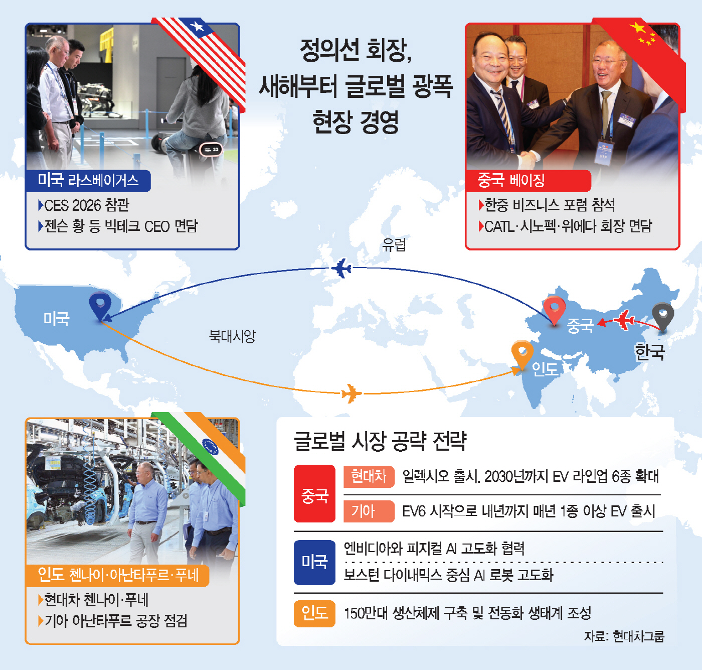 정 회장은 중국 방문 직후 미국으로 이동해 지난 6~7일 라스베이거스에서 열린 세계 최대 IT·가전 전시회 'CES 2026'을 참관했다.