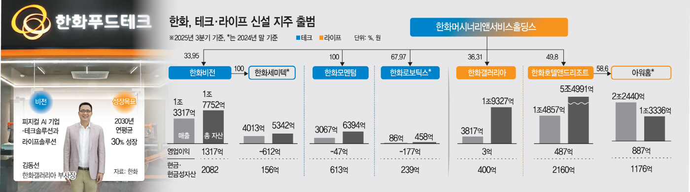 반면 한화세미텍은 고대역폭메모리(HBM) 생산 장비인 TC본더를 중심으로 신흥 강자로 부상했지만, 차세대 하이브리드 본더 등 기술 개발 성과는 시간이 더 필요하다는 평가다. 한화모멘텀과 한화로보틱스 역시 자동화 솔루션과 로봇 분야에서 사업 기반을 넓히고 있으나, 현재는 대규모 투자 단계에 머물러 있다. 재계에서는 "테크 부문에서 실질적인 현금창출력을 갖춘 곳은 한화비전이 유일하다"는 평가가 나온다.