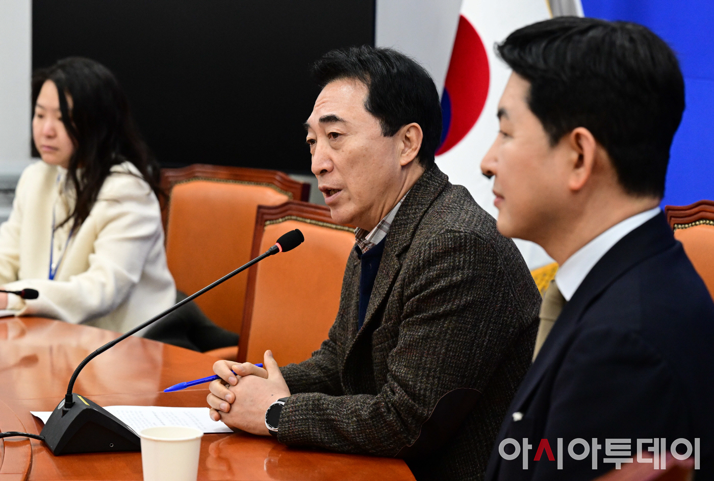 박수현 더불어민주당 수석대변인이 18일 국회에서 현안 관련 기자간담회를 갖고 있다.