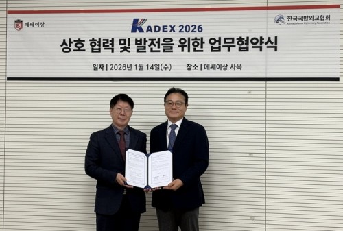 KADEX 2026 주관사인 메쎄이상은 지난 14일, 한국국방외교협회와 ‘KADEX 2026의 성공적 개최를 위한 업무협약(MOU)’을 맺었다고 19일 밝혔다.