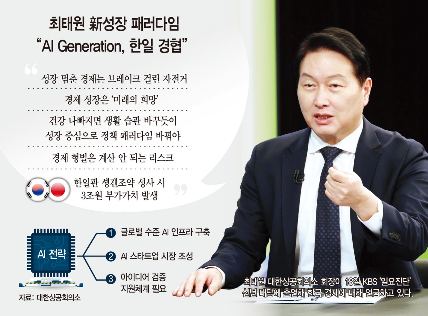 이어 규제 체계 전환의 필요성에 대해서도 언급했다. 최 회장은 "건강이 나빠지면 식습관이나 운동 방법을 바꾸듯이, 경제 성장이 거의 꺼져가는 상황에서는 정책도 달라져야 한다"며 "중소기업은 보호하고 대기업은 억제하는 방식이 아니라 성장하는 기업에 인센티브를 주는 구조로 바뀌어야 한다"고 말했다.