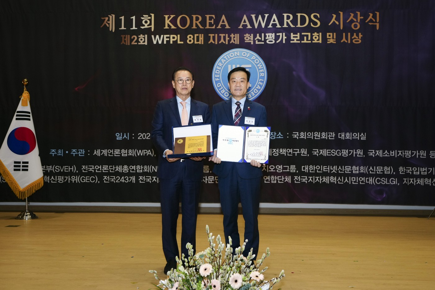 이번 시상은 세계청년리더총연맹(WFPL) 부설 지자체 혁신평가위원회(GEC)가 주관하고, 대한민국 국회(이종배 의원실) 등과 공동 주최해 지난 28일 국회의원회관 대회의실에서 개최됐다.