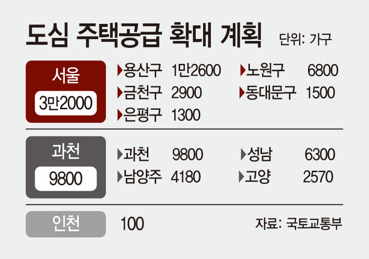 지역별로 보면 서울(3만2000가구 공급)이 전체 공급 물량 중 53.3%를 차지하는데 이 중 용산구에 가장 많은 물량이 공급된다. 용산국제업무지구, 캠프킴, 501 정보대 부지 등에 총 1만2600가구가 공급된다. 용산 유수지, 용산 도시재생 혁신지구, 용산우체국 노후청사 부지도 여기에 포함된다.