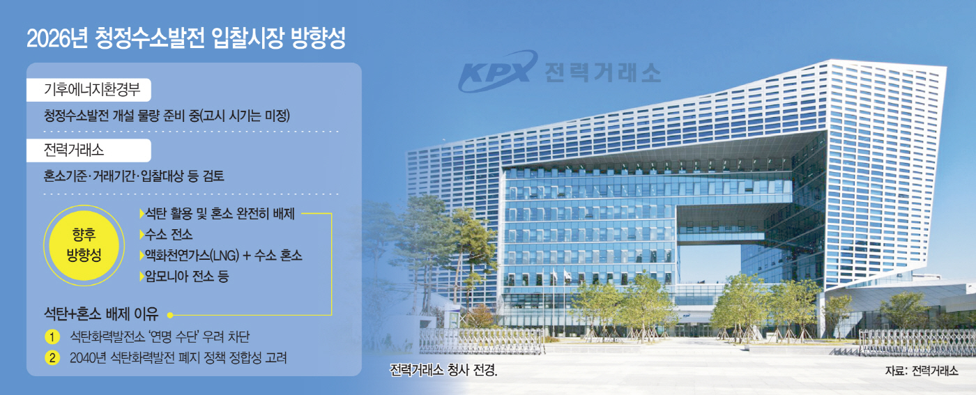 1일 업계에 따르면 재공고될 입찰 시장의 관건은 개설 물량과 석탄·수소·암모니아 간 혼소 허용 여부로, 전력거래소는 2026년 청정수소발전 입찰 개시를 염두에 두고 석탄 혼소를 참여 대상에서 배제하는 방향으로 기준을 검토 중이다.