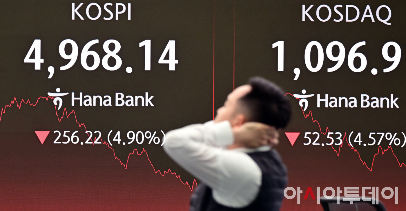 [포토]코스피 250포인트 급락…4,960선 추락에 매도 사이드카 발동