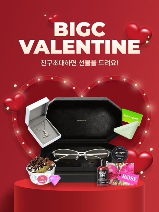 'BIGC VALENTINE'은 발렌타인데이 시즌을 맞아 친구와 함께 참여할 수 있도록 기획된 시즈널 프로모션이다. 친구 초대를 통해 참여하는 방식으로 연인이나 친구에게 선물하기 좋은 경품 구성 구성이 특징이다.