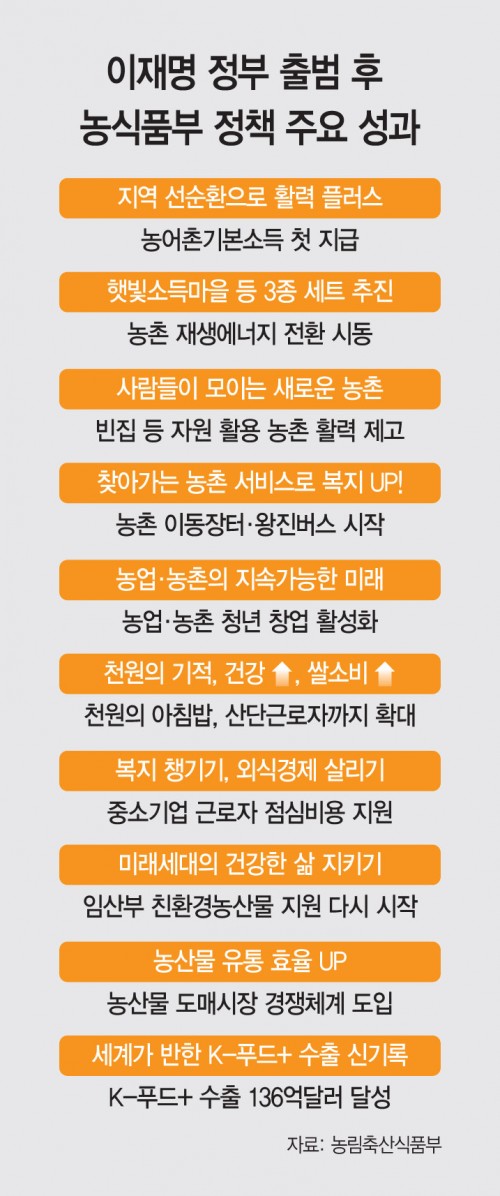 송 장관은 "작은 씨앗이 열매로 맺을 수 있도록 노력하겠다"고 다짐했다. 농식품부 관계자는 "정부 출범 이후 농업, 농촌의 변화를 이끌고 국민이 체감할 수 있는 의미 있는 성과를 만들었다고 생각한다"고 말했다.