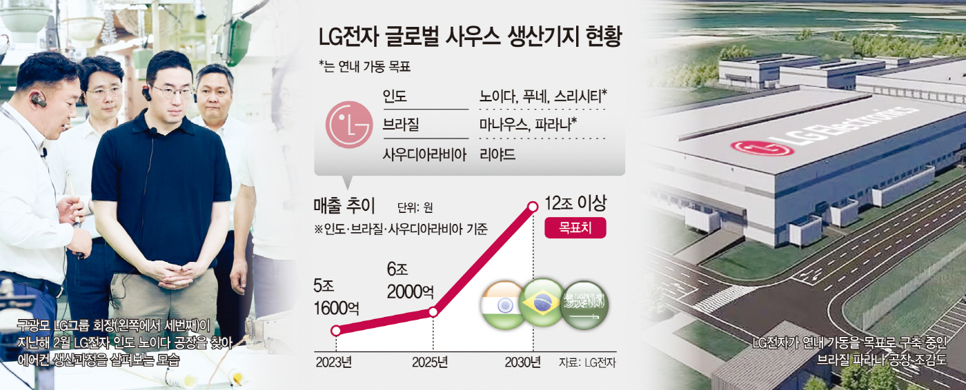 이미 1990년대부터 글로벌 사우스 주요 국가에 진출한 LG전자는 구 회장 체제에서 지난해에만 6조원 이상의 매출(인도·브라질·사우디아라비아)을 거두는 쾌거를 이뤘다. LG전자는 올해 신규 생산기지 가동과 판로 확대를 통해 2030년 12조원 이상의 매출을 올린단 목표다.