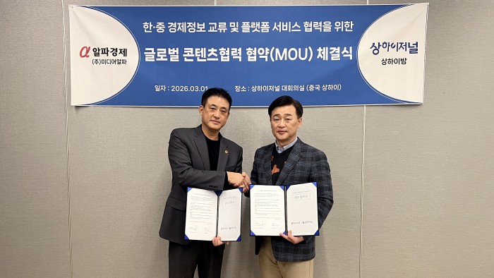 김상진 알파경제 대표이사는 "상하이저널과의 협업은 자사 글로벌비즈 콘텐츠 성장의 중요한 축이 될 것"이라며 "상하이를 중심으로 한 핵심 경제 정보를 국내에 가장 빠르고 정확하게 전달하는 파이프라인 역할을 하겠다"고 강조했다.