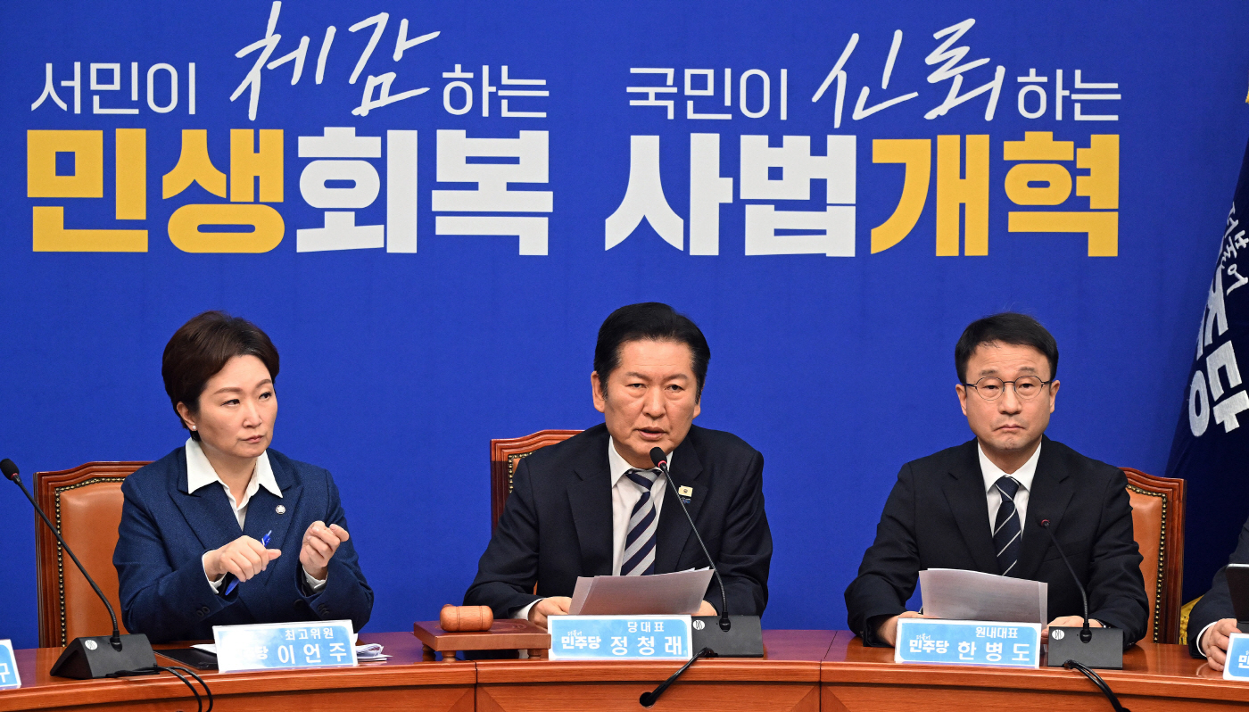 정청래 대표는 4일 열린 최고위원회의에서 "얼마나 많은 국민이 사법개혁 3법을 염원했고, 사법개혁 3대 입법을 지지해 왔는지 진정 모르냐. 1년 넘도록 사법개혁 법안을 다듬었다"며 "조희대 대법원장에게 정중히 권한다. 거취를 표명하길 바란다"고 밝혔다.