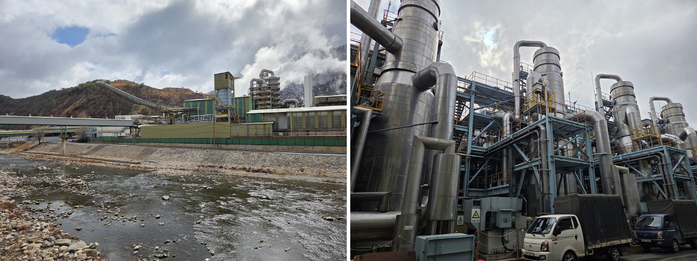 영풍 석포제련소 낙동강 유역(왼쪽)과 무방류시설이 가동되고 있는 모습. /최인규 기자