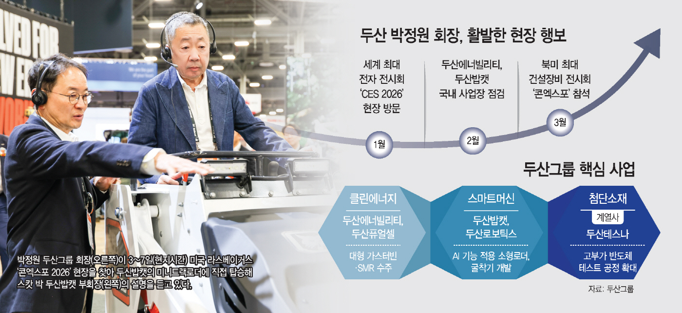 8일 재계 및 두산그룹에 따르면 박 회장은 지난 3~7일(현지시간) 미국 라스베이거스에서 열린 '콘엑스포(CONEXPO) 2026' 현장을 방문해 주요 전시관과 기술 트렌드를 살폈다.