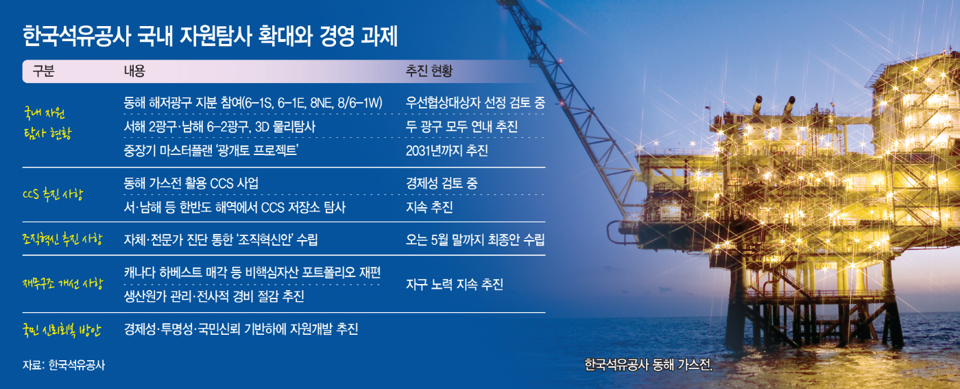 향후 추진되는 자원 탐사와 개발 사업은 공사의 국민 신뢰 회복과도 맞물려 추진될 수밖에 없는 상황이다. 손 사장은 "석유개발 신규사업은 국내 도입 가능성과 수익성, CCS 연계 가능성 등을 종합 평가해 전략지역 중심의 탐사자산을 발굴하고 체계적인 절차에 따라 추진하겠다"고 말했다. 또 "동해 가스전 탐사도 정부 정책 방향에 따라 객관적 검증과 이해관계자와의 투명한 소통을 거쳐 진행하겠다"고 밝혀, 향후 석유공사의 자원 개발 사업의 추진 방식을 놓고 업계의 관심이 집중되고 있다.