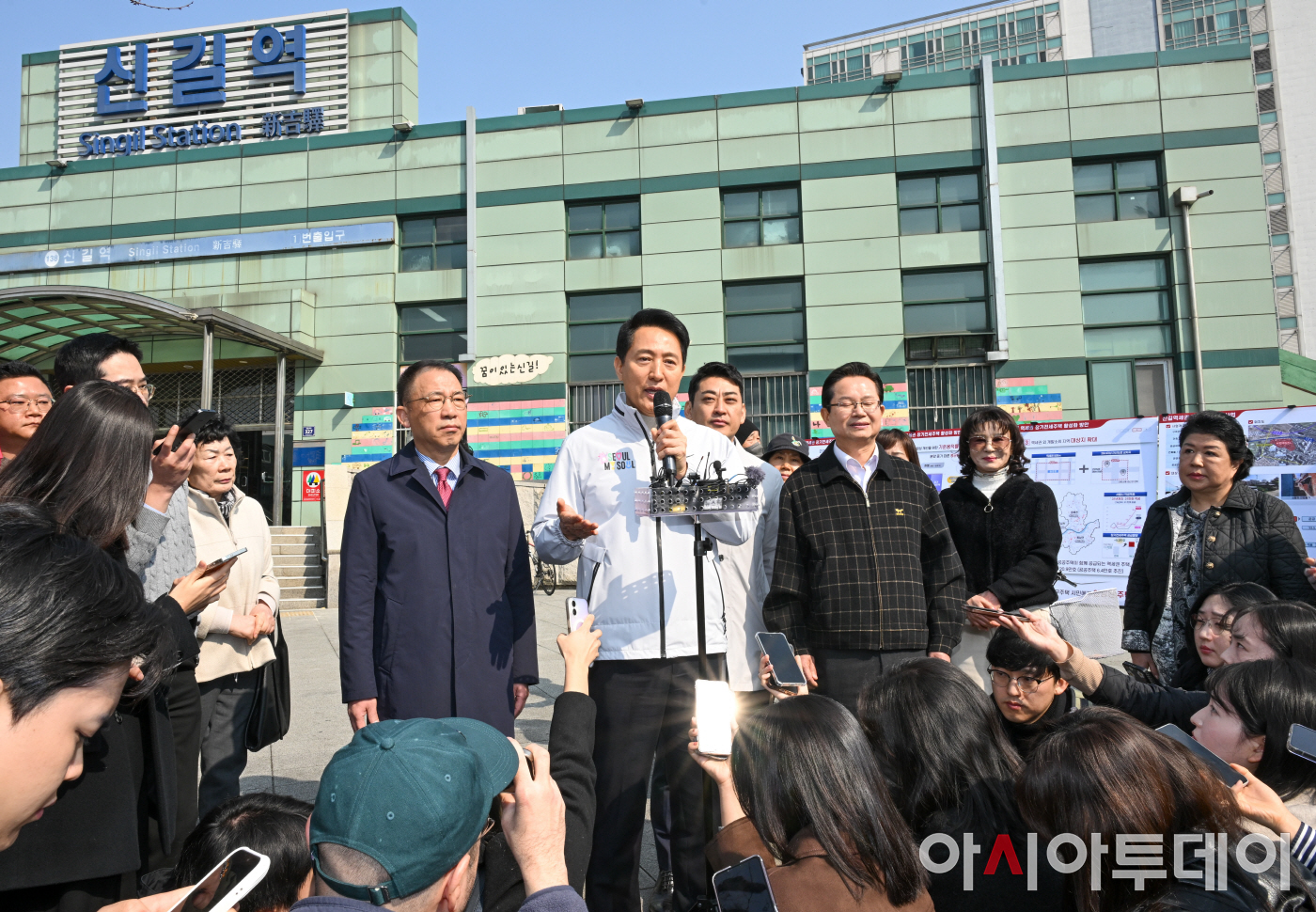 오세훈 서울시장이 17일 서울 영등포구 신길역세권 장기전세주택 건립현장을 찾아 역세권 주택 활성화 방안을 발표하고 있다. /정재훈 기자