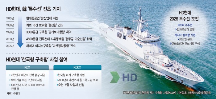 당시만 하더라도 특수선은 소위 '돈 되는 사업'이 아니었다는 후문이다. 상선에 비해 시장 규모가 작을 뿐 아니라 수주 기회도 국내에 한정됐기 때문이다. 그러나 HD현대는 우리 해군력을 증강하고 외국 의존을 벗어나 자체 방산 기술을 확보해야 한다는 사명으로 특수선 사업에 도전장을 내밀었다.