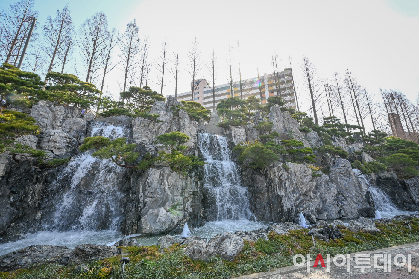 24일 서울 마포구 성산동 월드컵천에 경관폭포가 조성돼 산책로에 폭포 물줄기가 흐르고 있다. /정재훈 기자