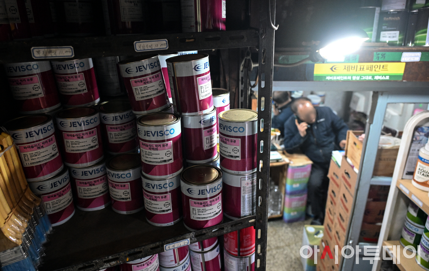 중동 전쟁 여파로 산업 필수 소재인 페인트 가격까지 오르고 있다. 24일 업계에 따르면 국내 주요 페인트 업체들이 수익성 방어를 위해 제품 가격 인상을 단행했다. 사진은 서울의 한 페인트 판매 대리점.
